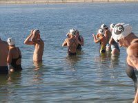 The Dam 5K swimmers wore the FC caps in honor of recently fallen open water great, Fran Crippen.”