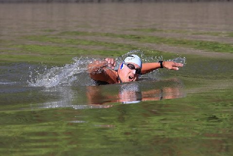While the race is open to kayakers (single or double), canoers, surfskiers, stand-up paddle boarders and relay swimmers (with 2-6 members), disbelieving eyes were focused on the butterflyer from Chicago.
