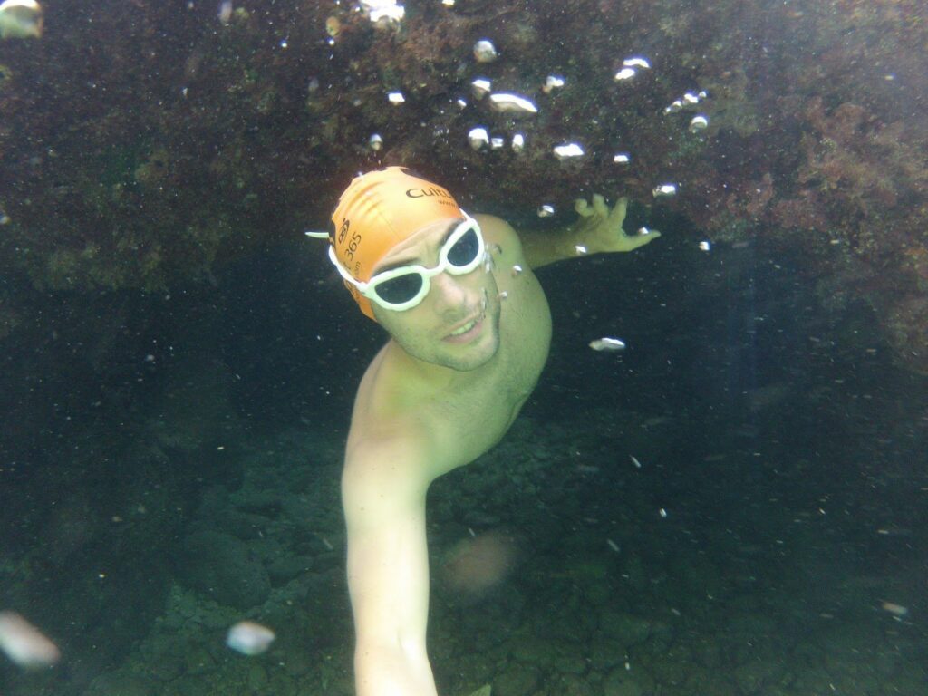He soon joined the competitive swimming club where he spent he developed into a national level backstroker. But the back and forth training over the black lines of the pool, caged by lane lines and interrupted by constant turns against concrete walls, was not for his future. He longed to escape the monotony of competitive pool swimming. Unlike his teammates, he yearned to feel the freedom in every stroke while swimming in the sea. The ocean called him well before open water swimming was still little known among the Spanish swimming community.