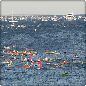“During my first Rottnest Channel Swim in 2000, halfway across the channel, the steering on my escort boat failed. After spending a fair bit of time treading water hoping they could fix the problem which they eventually didn’t, the choices were either end my swim or try to hook up with another boat. Even though I had lost a lot of time, I was determined to finish. It was decided that I would swim over to another boat, which I did. I explained my dilemma and the skipper said he was fine to guide both swimmers. He left the kayaker to guide us for a few minutes whilst he went to my boat to pick up my drinks.
