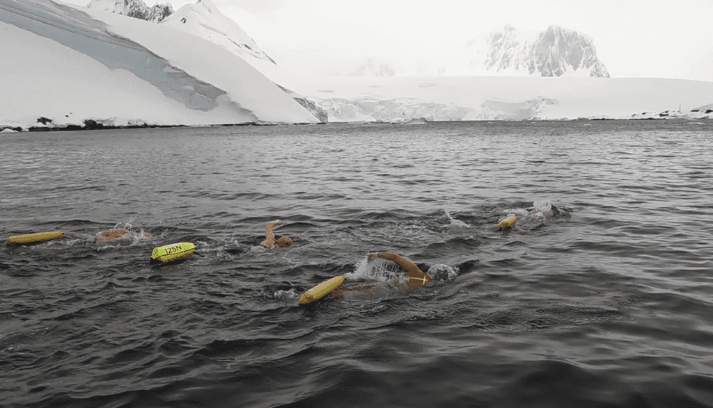 In 2018 Sam Whelpton, Alexander Brylin, Yunfeng Wang, Leszek Naziemiec, Paolo Chiarino, Andrey Agarkov, and Sergio Salomone all completed an Ice Kilometer in Port Lockroy. Earlier this year in February Carlos Franco, Conor O Connor, Elizabeth Almond, Filip Jicha, Guillaume Le Loher, Joshua Ackerman, Lynton Mortensen, Marion Joffle, Ranie Pearce, Sam Whelpton, Stève Stievenart , Thomas Baldwin, Diane Lee, Ellery McGowan, Filip Jicha Sr., Martin Jamieson, Jack Van Wyk, Karen Markin, Louise Hyder-Darlington, and Hugh Hyder-Darlington swam successfully in a very similar course and location.