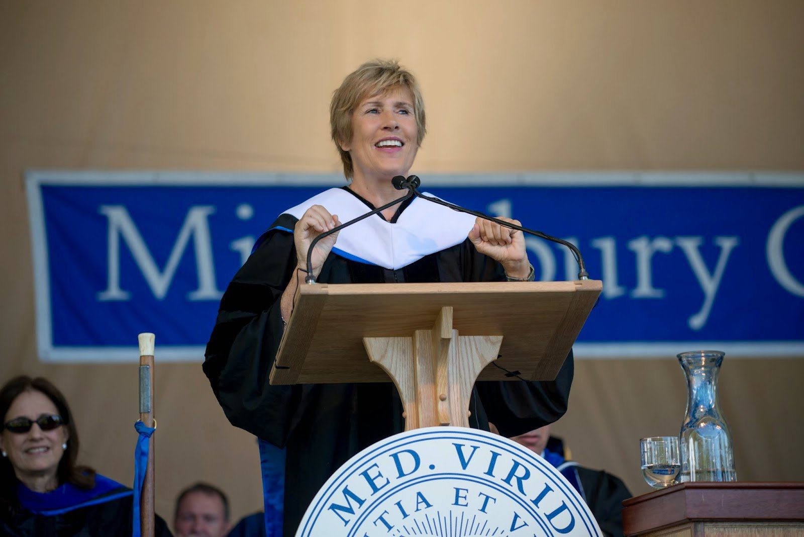Photos by Brett Simison show Diana Nyad delivering the Middlebury College commencement address and the newest Middlebury College graduates.