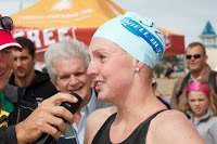 First off on Day One will be the 7K Bell Buoy Challenge, won in 2009 by English Channel world record holder Petar Stoychev of Bulgaria and world 5K champion Melissa Gorman of Australia (shown on left). With over R60,000 (US$8,250) in cash prize, the event will draw some pretty strong swimmers from all continents who will showcase their talents in front of an estimated 600,000 spectators over the weekend.