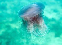 The types of jellyfish that swimmers can encounter at the beach and in the water of the Gulf include moon jellyfish, sea nettles, cannonball jellies, Portuguese man o war, By-the-wind sailor, pink meanies, mauve stingers and the Australian spotted jellyfish.