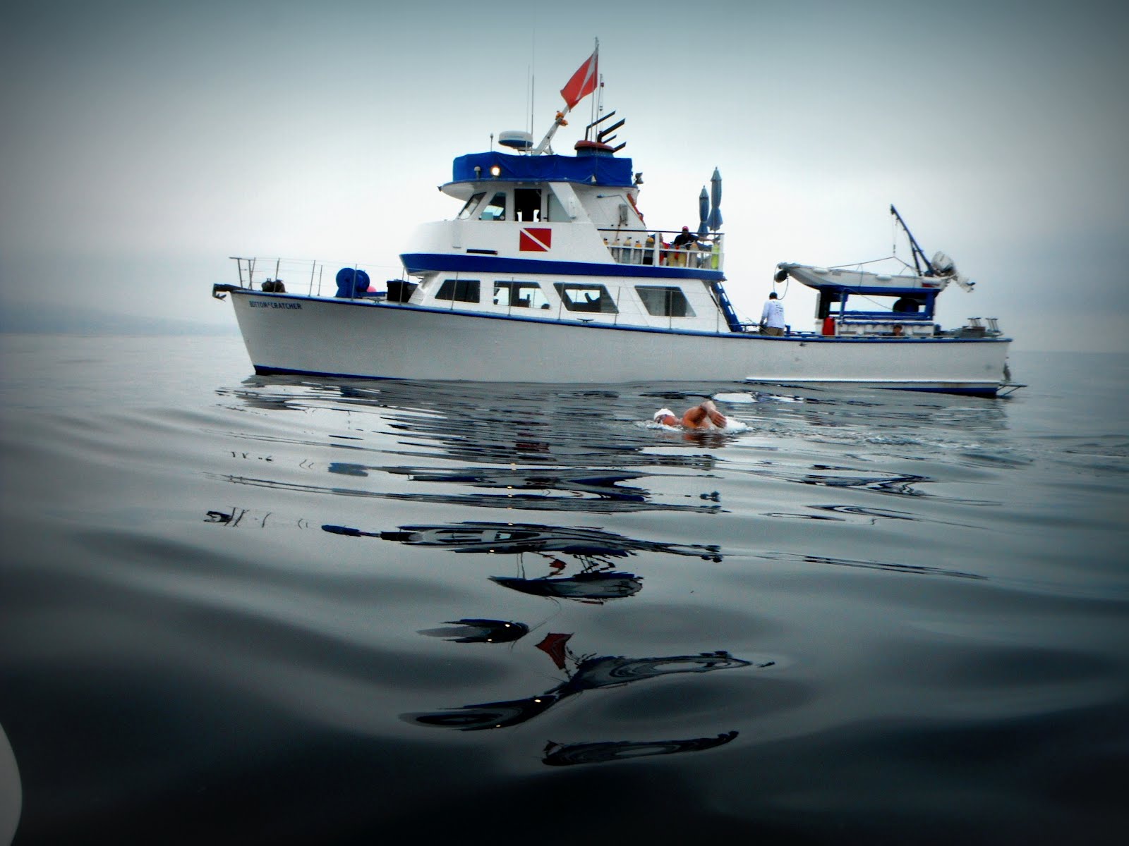 But he has luck on his side in other ways. “In terms of conditions, it simply could not have been more perfect. Gentle swells, almost no waves throughout, and absolutely flat water all morning. It was unbelievable. [International Marathon Swimming Hall of Fame inductee] John York referred to it as Lake Catalina which was pretty accurate. Lake Michigan is always choppier than the Catalina Channel was that day.”
