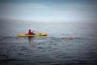 And understanding the car culture of California, McConnell was reminded of the traffic patterns of Los Angeles. “I also loved having the kayak in the water along with the escort boat (Greg Elliott’s Bottom Scratcher). Having the kayak there made it like swimming down the lane of a freeway. I chronically swim crooked; a result from my 2010 spinal surgery and a weak left arm, so the kayak was a good governor.”