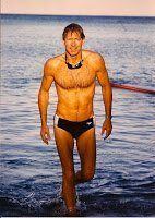 Dr. Harry Huffaker, shown on left at the age of 50 after one of his marathon swims in Hawaii, was inducted in the International Marathon Swimming Hall of Fame as a member of the Class of 2010, an honor well-deserved.
