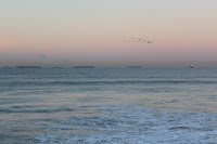 Pods of dolphins were skimming right below the surface of the water while birds above were flying in formation. And hoards of container ships from Asia and elsewhere were waiting outside of Long Beach Harbor, cooling their engines in the Catalina Channel, waiting to unload their cargo, seemingly also in drafting mode.