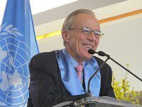 Photo of Drury Gallagher by Skip Storch at the United Nations where Gallagher was honored in 2011.