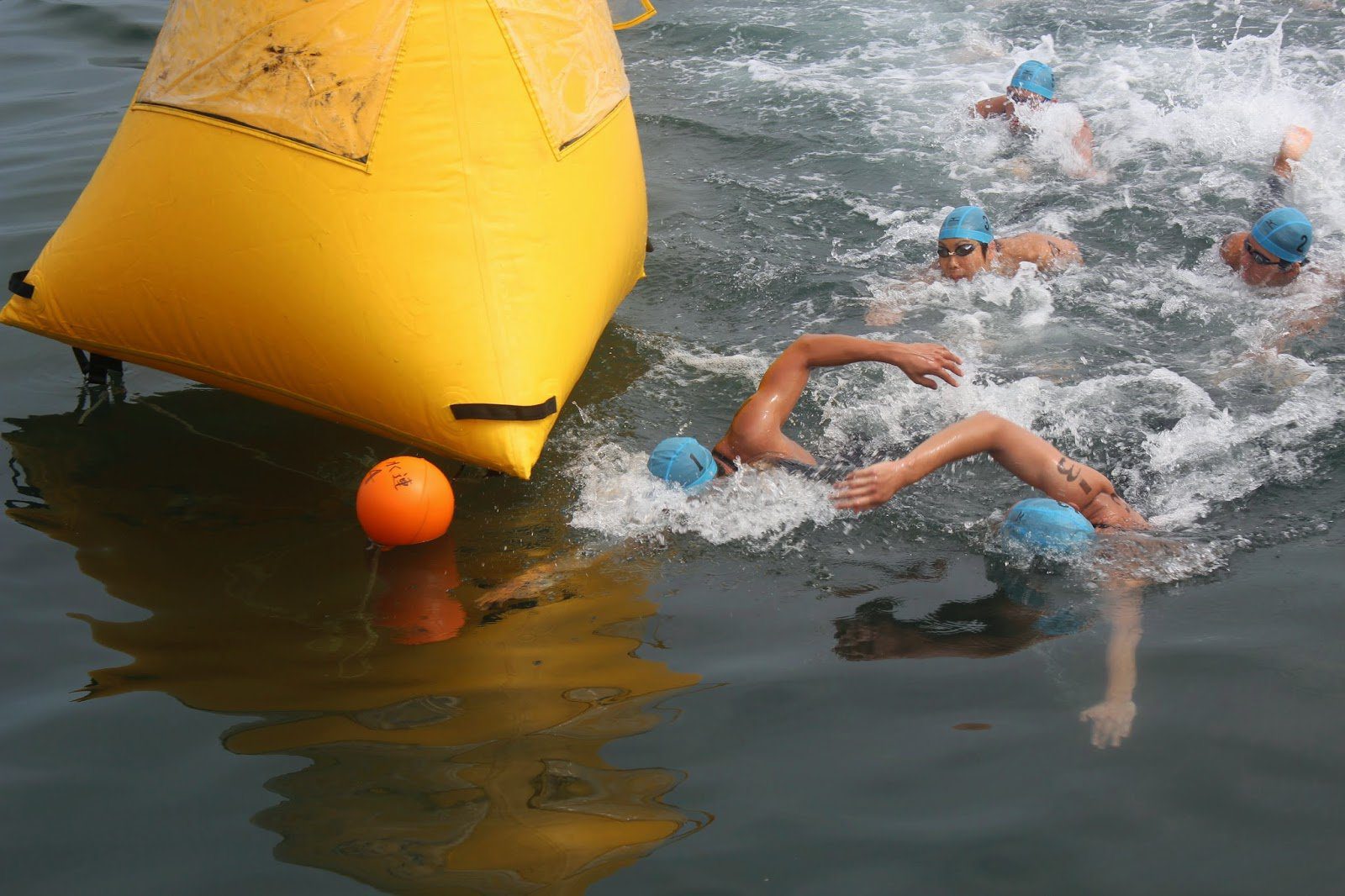 The numbered swim caps are quite easy to see in the water, especially for the race officials, coaches, media and turn judges.