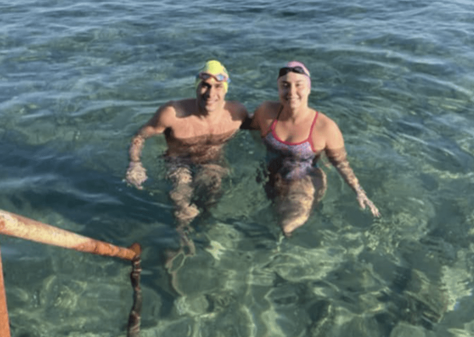 But he eventually met his wife, Bengisu Avci (Turkey, 28, IISA bio here, @bengisuavci). Together, they made a life in Çanakkale, Turkey as Avci was developing into a world-class marathon swimmer. He explains his comeback, “I was so inspired by her dream to complete the Oceans Seven that I started training after an 11-year hiatus.“