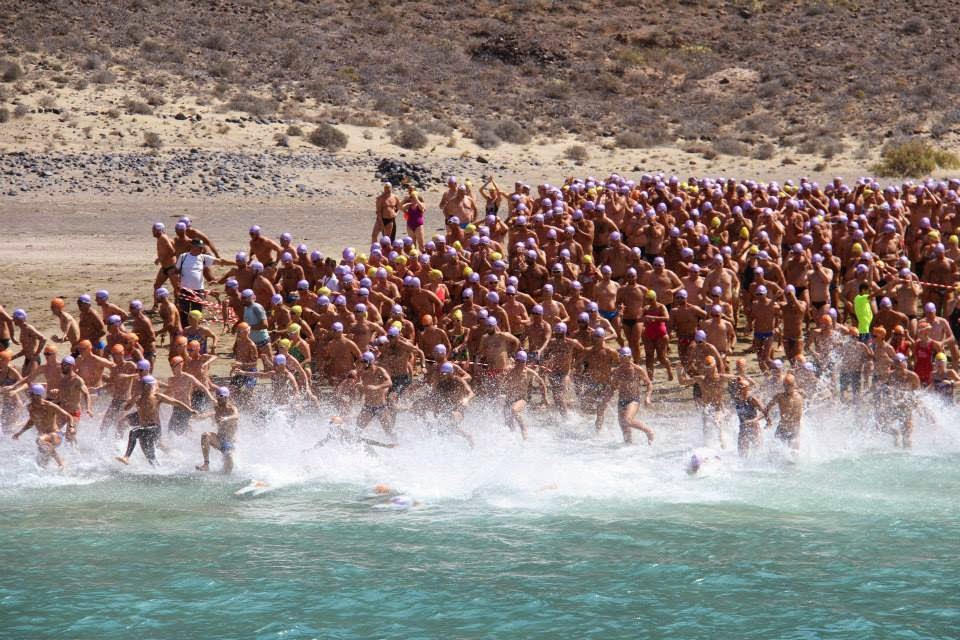 The 22nd annual 2.6 km interisland Travesía a Nado El Río from Lanzarote to La Graciosa in the Canary Islands (Islas Canarias).