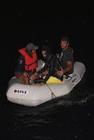Problems: 3 kayakers were in the water along with Nyad. Sharks were lurking below and box jellyfish were floating on the surface about so bright (white) lights were not advisable to use; red filtered light was used. Winds were howling and lightening strikes were seen 360 degrees around the 5-boat flotilla.