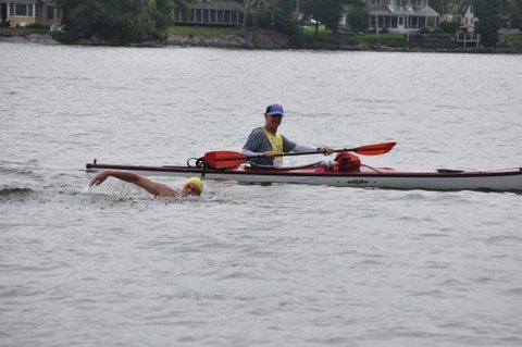 The Weston, Massachusetts swimmer and former NCAA swimmer from Northeastern University posted a record setting time of 3 hours 38 minutes 36 seconds. His steady 13:32 per kilometer or a 1:21 per 100m pace was powerful as he kept up his stroke rate while fending off a determined challenge by 17-year-old Feodor Orlov of Dublin, Ohio (Rob Geisler, kayaker) who finished in 3:43:51.