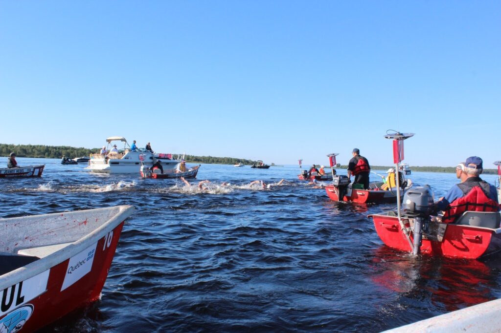 This proximity of the athletes in the water and the escort boats can create potentially dangerous situations. At the Traversée Internationale du lac Memphrémagog, FINA Delegate Daniel Leduc and the coaches discussed creating a “free zone” around the large packs.