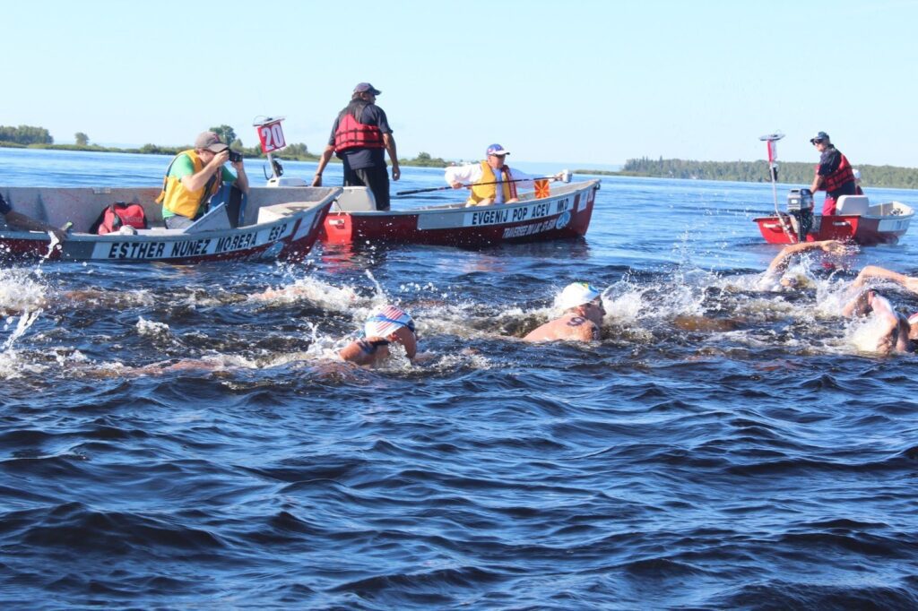 This proximity of the athletes in the water and the escort boats can create potentially dangerous situations. At the Traversée Internationale du lac Memphrémagog, FINA Delegate Daniel Leduc and the coaches discussed creating a “free zone” around the large packs.