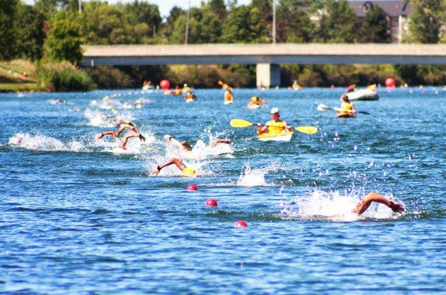Photo shows the boy’s inaugural 5 km race at the 2012 FINA World Junior Open Water Swimming Championships in Welland, Ontario, Canada.