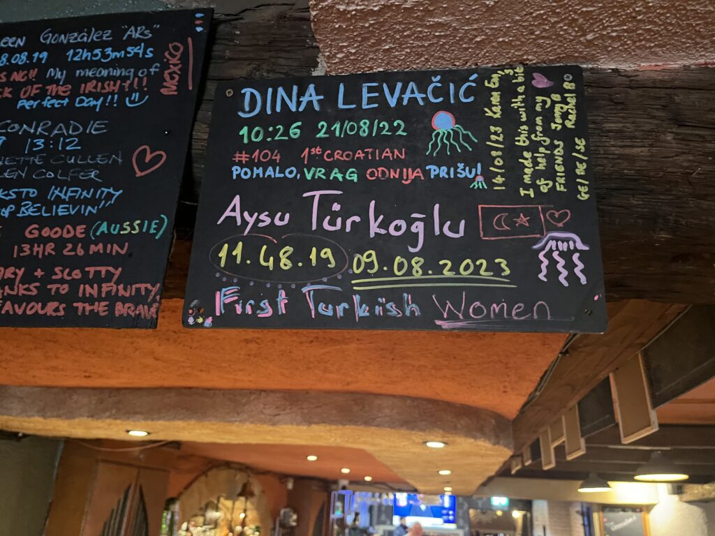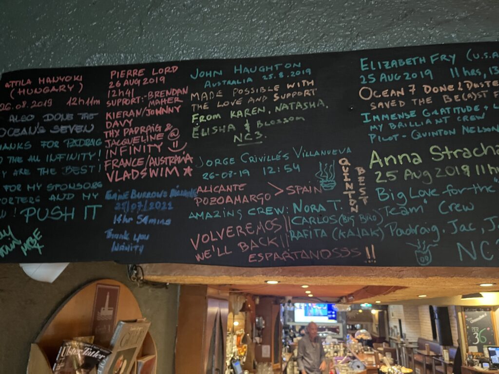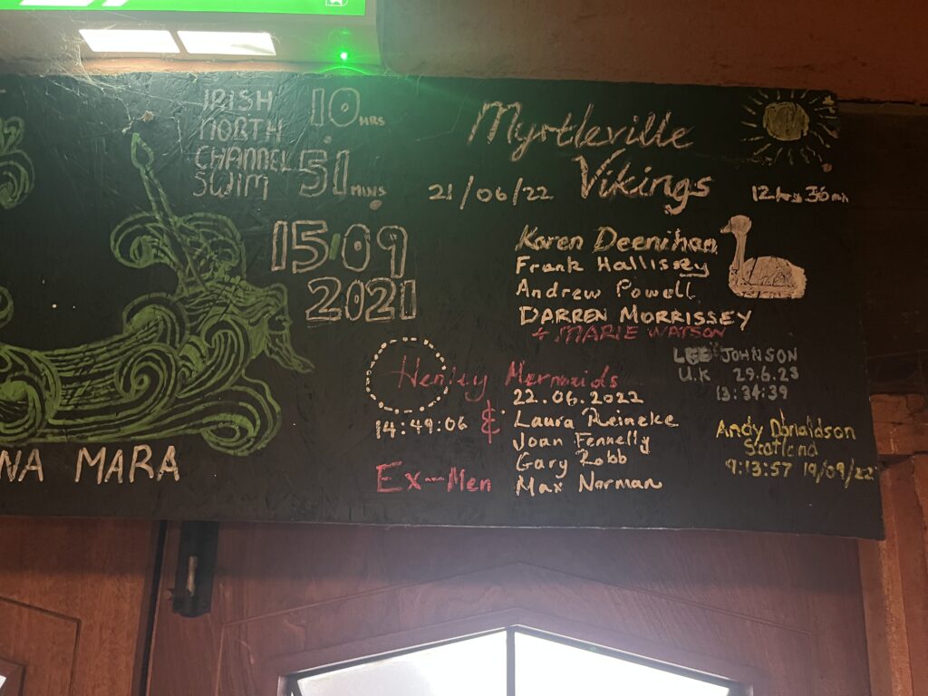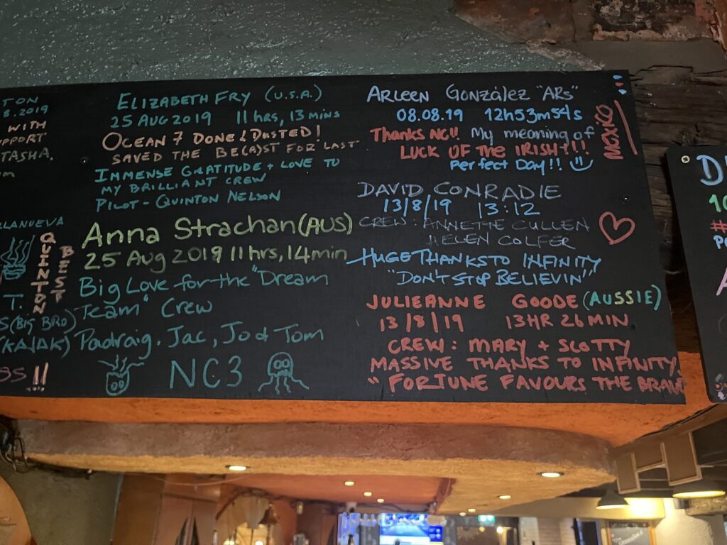 So there may be more signatures on the walls of Pier 36. Examples of signatories of successful solo and relay crossings hung on the walls of Pier 36 as well as Rory Fitzgerald (IISA bio here, @fitzgerald.rory), Kate Steels (IISA bio here, @waterbabykate), and Nicola Doran (IISA bio here, @nicoladoran1) are shown in front of Pier 36 above, owned and managed by the personable and charismatic Margaret Waterworth and family.