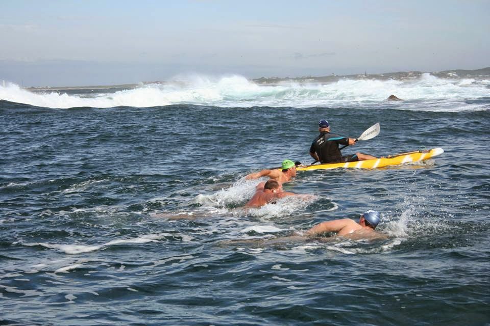 Three open water swimmers rounded Cape St Francis Point and Shark Point on Saturday in an unprecedented 8 km swim in Eastern Cape province of South Africa.