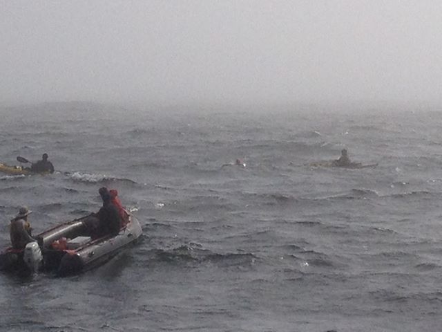 NOTE: Bauernfeind was finally pulled out of the water due to bad weather that was getting worse. Support crew member Michelle Macy explains, “The tracker did not exactly describe the whole story based on some other things like avoiding marine life and 15+ knot headwinds in addition to crazy fog that created nastiness on the water.“