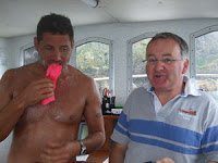Photo above shows Brian Meharg (right) with North Channel swimmer Howard Keech (left).