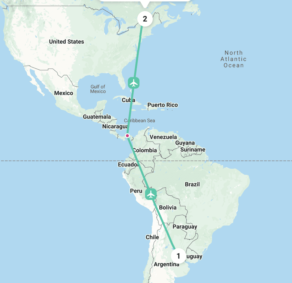 Since 2009, Vanesa Garcia has traveled from her native town of Santa Fe in Argentina to lac St-Jean in Roberval, Québec, Canada. Her travel is 8,978 km in a straight line, but getting to lac St-Jean to compete in the annual 32 km Traversée internationale du lac St-Jean requires all kinds of modes of transportation along the way.