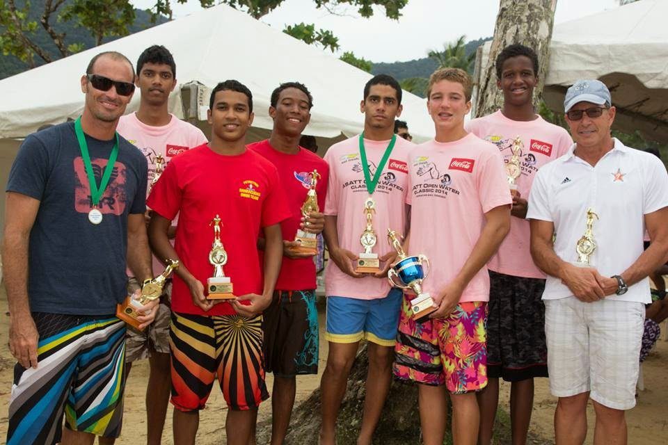 Gerry Rodrigues [shown on far right in white] headlined the open water swimming symposium hosted by the Amateur Swimming Association of Trinidad & Tobago as part of the annual ASATT Maracas Bay Open Water Classic.