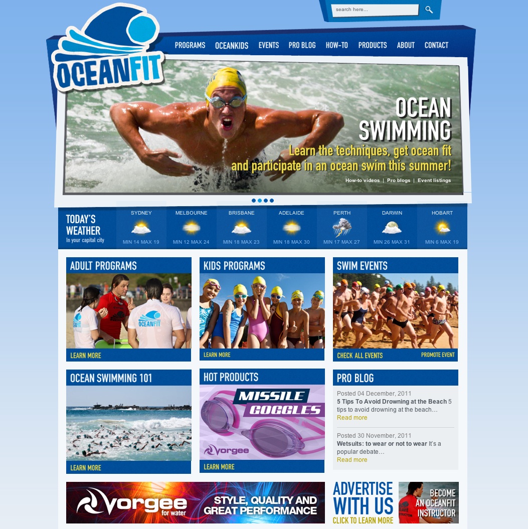 The OceanFit online presence includes a fun, interactive and educational beach website that is bright and easy to navigate.