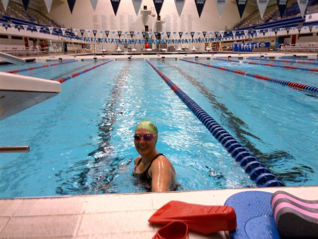 And she has plenty of company, especially with all her open water swimming and triathlon teammates at the Indy Aquatic Masters. The lakes in the area are a magnet for the passionate open water swimming community. Fast channel swimming veterans like Victoria Rian and others including Mark Spratt, Bob Dickson, Jeffrey Berridge, and Jan Johnson enable her to have plenty of swimming buddies throughout the season.