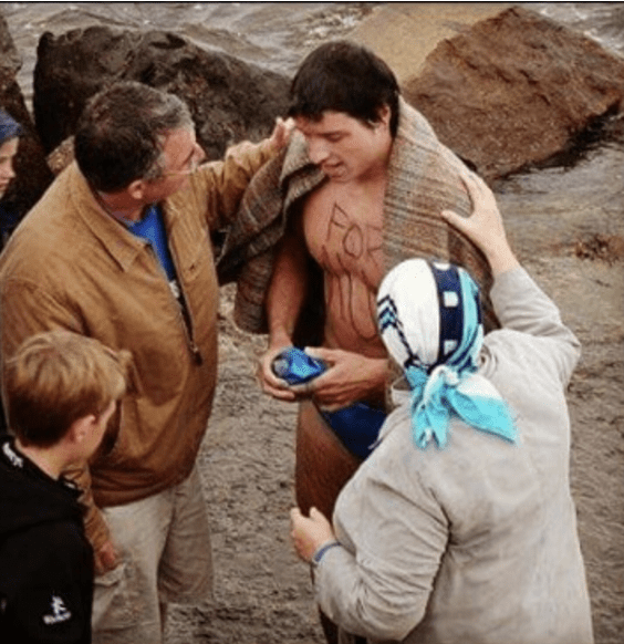 Sadly, Frances passed away on April 21st 2008, but her passion and unselfishness continues. The 13 km swim was renamed after her that has led to over 1,000 swimmers completing the swim. The family has carried on her legacy, including Kevin and Frances’s two daughters, Fiona and Claire. Fiona is a key member of the volunteer committee and is following in her mother’s footsteps, whilst Claire became the youngest swimmer to make the crossing at age 16. The three children, along with their father, Brian Thornton [shown above on right] are the driving forces behind the fundraising for Cancer Care West.