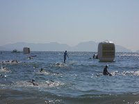 EffectSports lines its open water swim courses with some massive turn buoys.