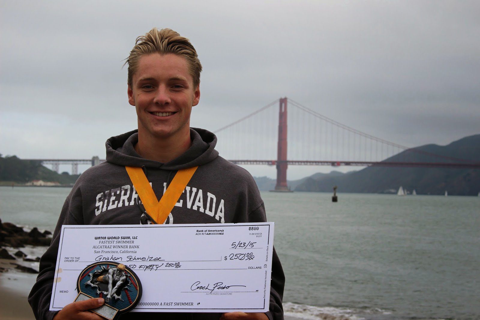 Graham Schmelzer took out time from his busy age group water polo season and high school swim season and homework obligations to win Saturday’s 2-mile Alcatraz Classic for the Fastest in San Francisco Bay.