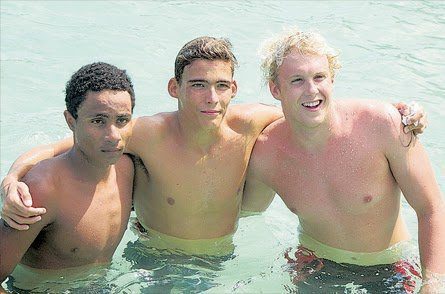 Photo shows Anthony Rechal (left) among the top 3 finishers in the 2013 CARIRTA Championships.