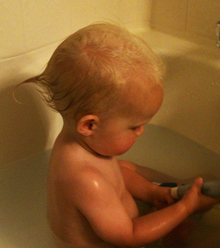 And little Harper especially loves his blonde locks styled like a sleek, smooth stingray. But sometimes he gets in a mood and likes changing it up. He can spike his ‘do like a menacing jellyfish.