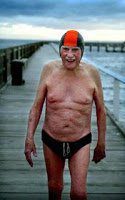 Harry Raisbeck, a member and president of the Black Rock Icebergers in Melbourne, Australia swam 600m daily through winter until his doctor asked him to stop at the age of 95. He frequently did a winter mile swim in the Brighton Baths in Melbourne.