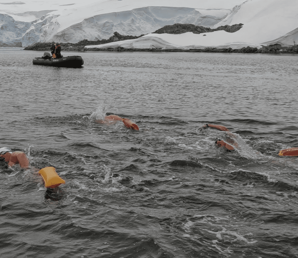 The Antarctica Ice Swimming Adventure was an ice swimming expedition with opportunities for the members of the expedition to challenge themselves in various distances from 50m to an Ice Kilometer.