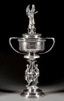 The George V sterling silver trophy was made by Elkington & Co. and is known as The Alexander Channel Cup. It is a 3-foot silver trophy that was presented to Henry for being the first American to swim the English Channel, a beautiful award for an incredible individual.