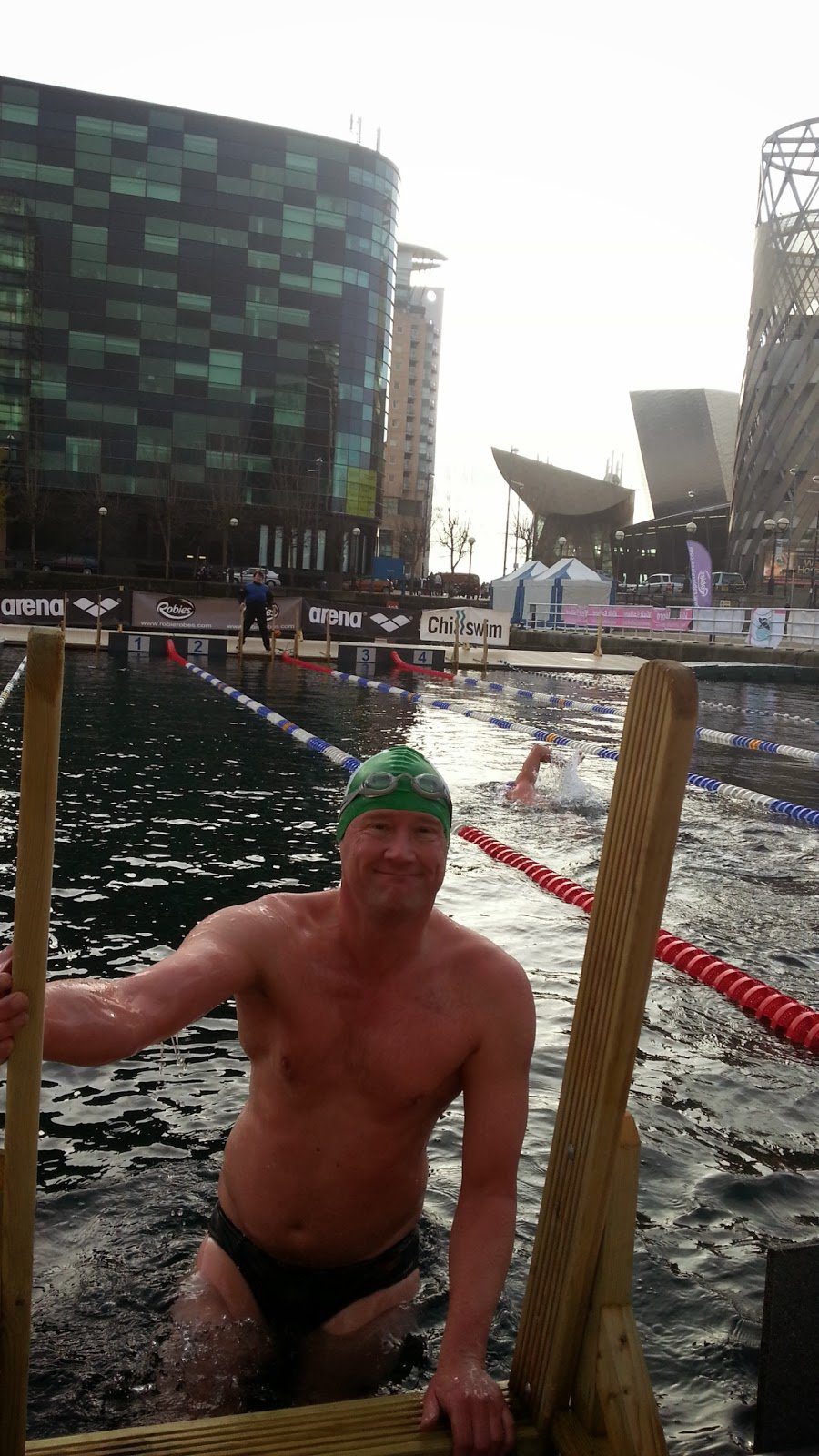 Andrew Allum broke 6 minutes in the 456m endurance event at the inaugural Big Chill Swim Salford in England last December.