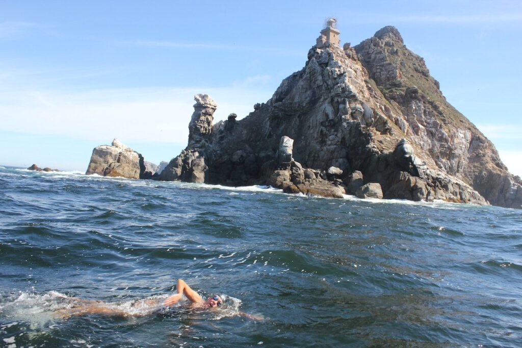 She swam 8.5 km around Cape Point in 2 hours 36 minutes. She vividly explains – and shows – how she did it here: