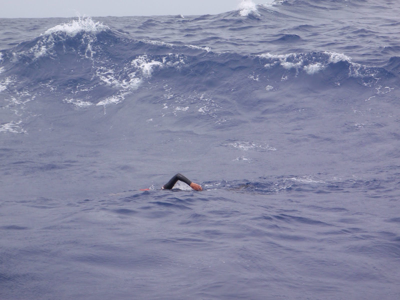 Day 1 – 5 am, 4.12 nm, 78ºF (25.5ºC), 6-8′ waves with 15-18 knot winds, jellyfish stings
