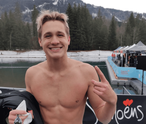 On the women’s side, of the 13 events on the race schedule, the powerful women’s team from New Zealand hold an astonishing 8 records or 61.5% of all the world records. The team is led by 20-year-old Emilia Finer (250m freestyle in 2:56.69 + 200m individual medley in 2:40.21 + 100m butterfly in 1:10.42, shown on left above), 100m freestyle: 32-year-old Laura Quilter (@auramove.nz, 100m freestyle in 1:01.17 + 100m backstroke in 1:09.12 + 50m freestyle in 27.56 + 50m butterfly in 28.81, shown in middle above), and 18-year-old Sophie Winter (100m individual medley in 1:12.82, shown on right above). Additionally, the women are joined by 200m individual medley men’s world record holder Cameron Stanley (200m IM in 2:29.05). All their records were set in July 2024 at the IISA New Zealand and Southern Hemisphere Pool Championships when the water temperature was 2.26°C with a wind chill of -3.00°C – so they are ready to swim fast in the 50m swimming pool in Molveno.