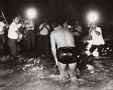 Photo shows Keo Nakama finishing on his 1961 swim.