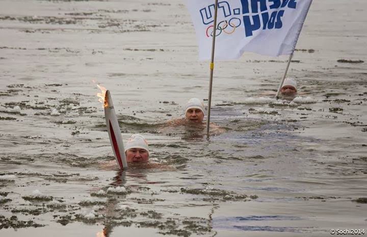 A number of renowned ice swimmers were invited to participate in a demonstration ice swimming event at the 2014 Sochi Winter Olympic Games on February 2nd. The ice swimmers had planned to swim with a number of national flags behind the Olympic Torch to help usher in the Winter Olympics.