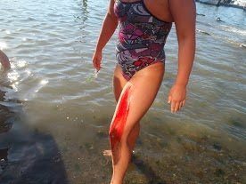 In cold water or in murky waters, it may be difficult to know that you are bleeding in these cases. But if you are in an ocean swim, it is always best to confirm if you are bleeding and tell the race staff or safety personnel…and get out.