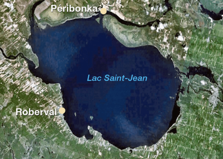 While there have been many years when swimmers have been pulled from the Traversée internationale du lac St-Jean due to hypothermia, in the 1997 race, the water temperatures were on the warm side. The start of the race in Péribonka was in an inflowing river where the swimmers competed 4.11 km in 18.3°C water. The next 35.89 km of the race that ended in Roberval (see map below) was held in the lake where the mean temperature was 21.9°C while the air temperature was 23°C – a remarkably nice day on lac St-Jean despite the stiff winds that ranged between 20 and 40 kph.