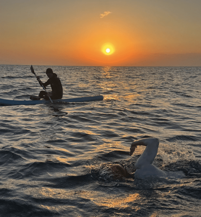 Swimming was not his primary sport, but it soon became a passion, “I swam the English Channel in June 2012. Training for that swim started in November 2011. I previously had no swimming training or experience, barring a couple of triathlons, here and there. I had never really swum before, so yes it was. As I was new to swimming, I needed a lot of technical work. I found a great coach in Ray Gibbs of Swim Canary Wharf in London. He helped me swim with a very modern long distance freestyle technique. In terms of endurance, it wasn’t too difficult to transition from rowing and cycling to swimming.“
