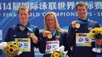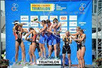 Photo above of the gold medal winning trio of Andrew Gemmell, Ashley Twichell and Sean Ryan at the 2011 World Swimming Championships courtesy of Dr. Jim Miller and the photo below courtesy of the International Triathlon Union.