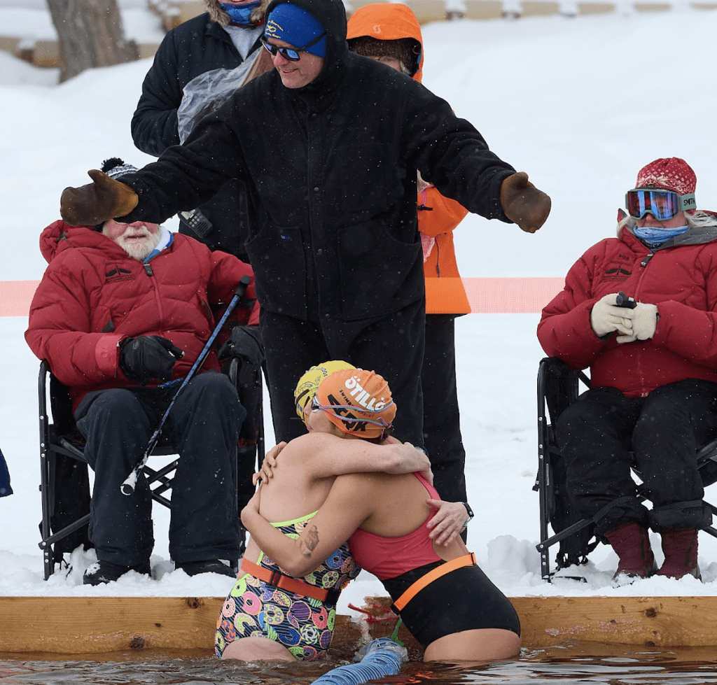 Double-winner Ildiko Szekely later said about her first-time ice swimming competition. “The ice races were super fun. I didn’t know what to expect, so I only signed up for the sprint events. I really had a great time. It didn’t take me much to get warm at all; not like after a 3-minute ocean dip in the water. I had an hour between the 25m and 50m freestyle races and I was completely fine. I just took off my suit and put on warm clothes. I didn’t get the shakes at all.”