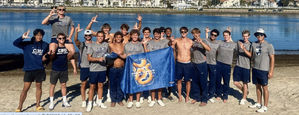 For the second year in a row, the men of California Baptist University kicked off their swim season at the beach, defending their title at the 2025 MPSF Open Water Swimming Championships held in Marine Stadium in Long Beach, California.