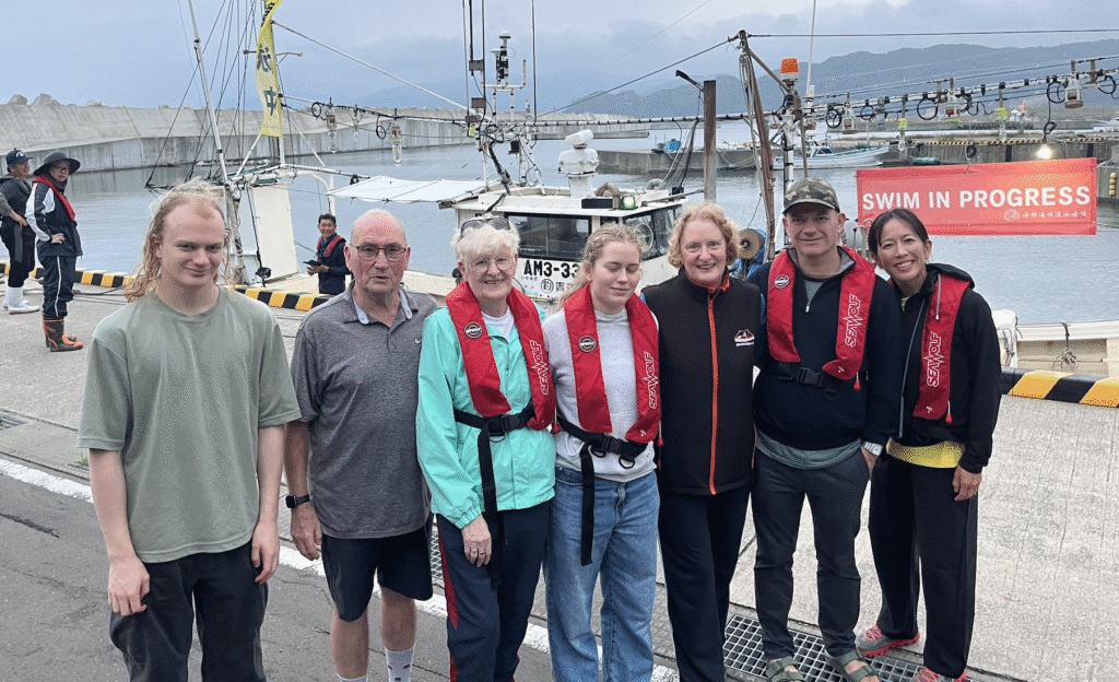 She swam valiantly with her mother and daughter on board along with Japanese-language interpreter Maya Yatsu, starting at 4:55 am. Unfortunately, she called off the swim 6.3 km from Hokkaido at 5:35 pm after talking with Captain Masa and her family. Hopes were high for her Oceans Seven challenge, but today, Mother Nature had the upper hand.